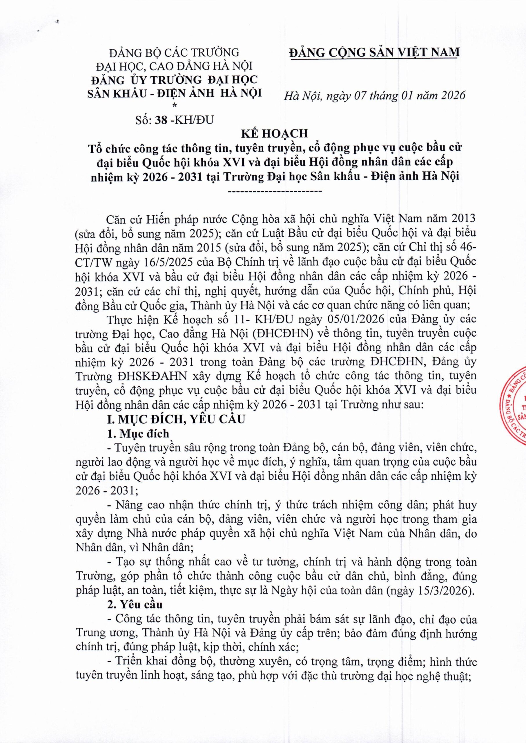 Kế hoạch Tổ chức công tác thông tin, tuyên truyền, cổ động phục vụ cuộc bầu cử đại biểu Quốc hội khóa XVI và đại biểu Hội đồng nhân dân…