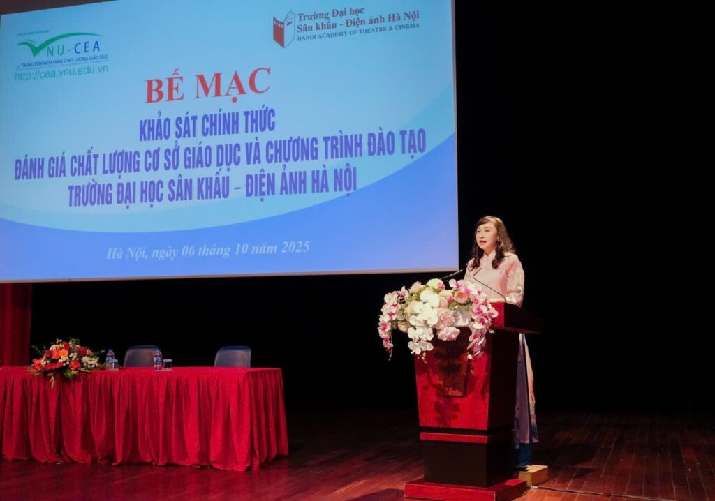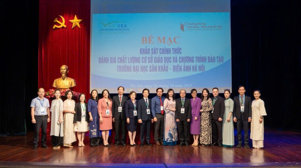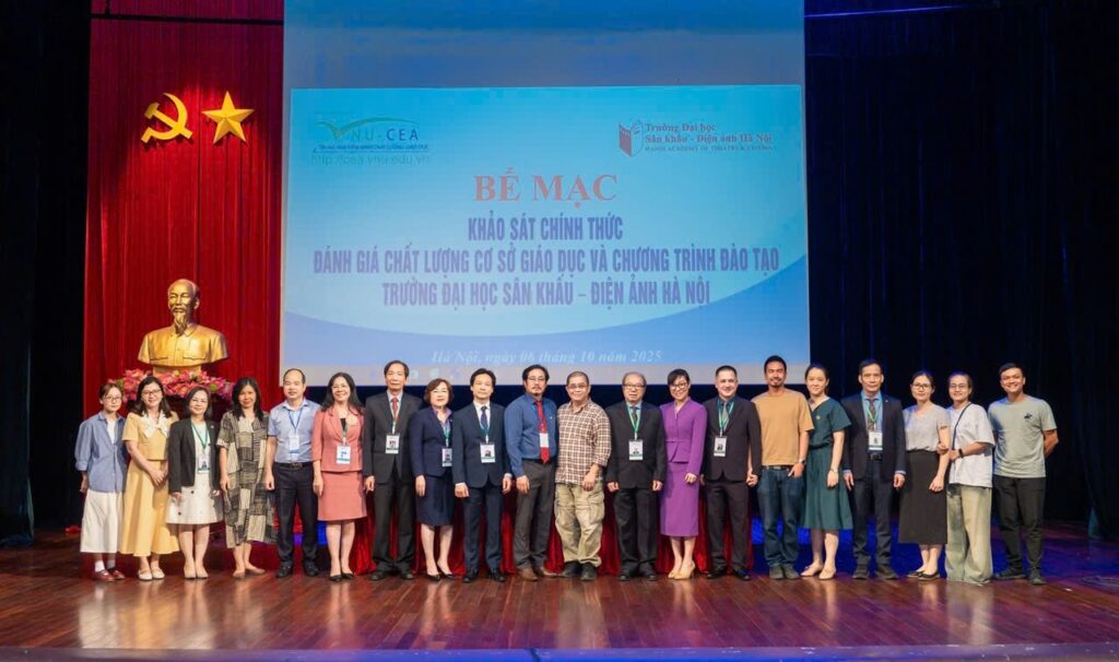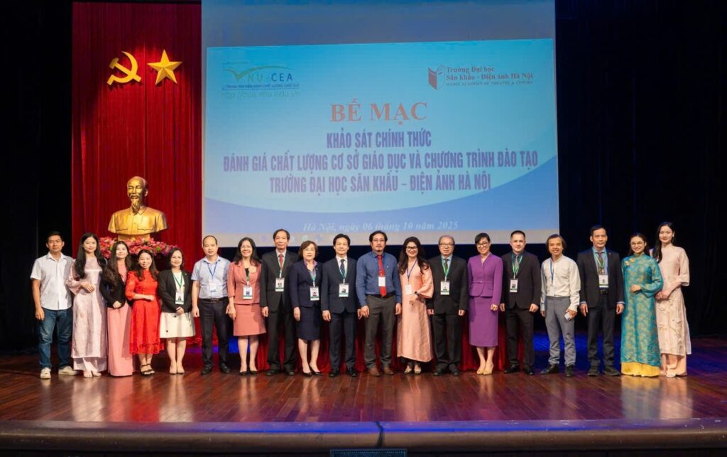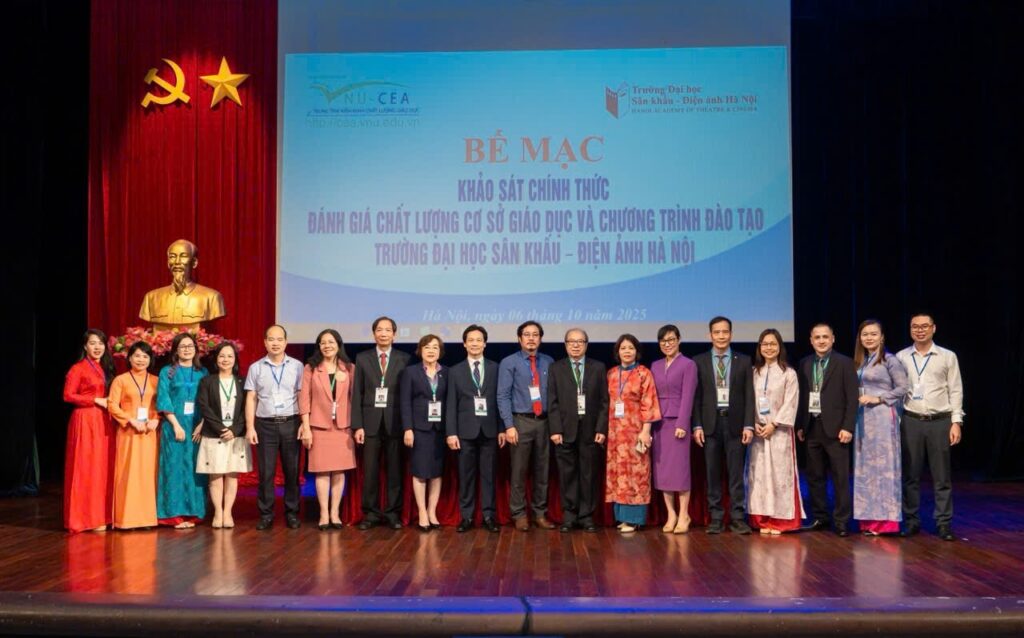Sau 6 ngày làm việc (từ ngày 01 đến ngày 06/10/2025) khẩn trương, nghiêm túc, trách nhiệm và hiệu quả của Đoàn chuyên gia đánh giá ngoài cùng toàn thể cán bộ, giảng viên, sinh viên và học viên, ngày 06/10/2025, Trường Đại học Sân khấu – Điện ảnh Hà Nội (ĐHSKĐAHN) đã tổ chức Lễ Bế mạc khảo sát chính thức đánh giá ngoài chất lượng cơ sở giáo dục chu kỳ 2 và 03 chương trình đào tạo (CTĐT) bậc đại học gồm: Diễn viên Kịch, Điện ảnh – Truyền hình; Huấn luyện Múa; và Đạo diễn Điện ảnh.