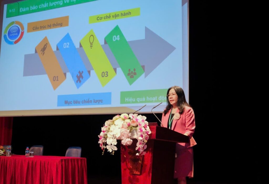 Buổi lễ có sự tham dự trực tiếp và trực tuyến của Đoàn chuyên gia đánh giá ngoài (ĐGN) đến từ Trung tâm Kiểm định chất lượng giáo dục – Đại học Quốc gia Hà Nội (KĐCLGD – ĐHQGHN).