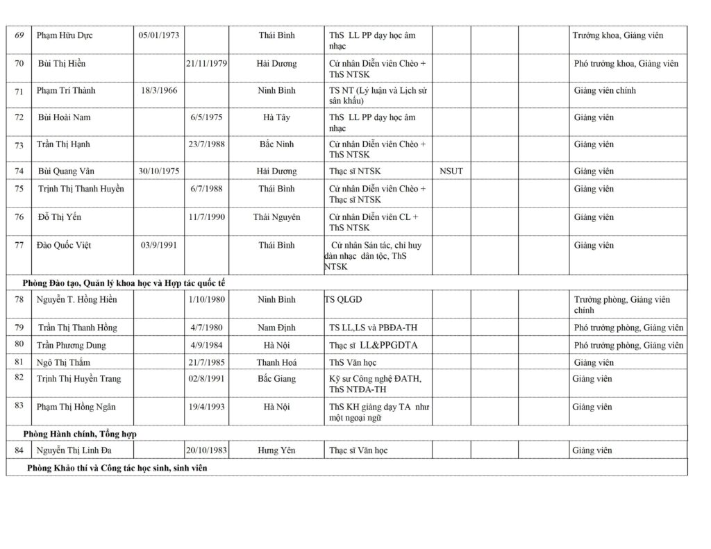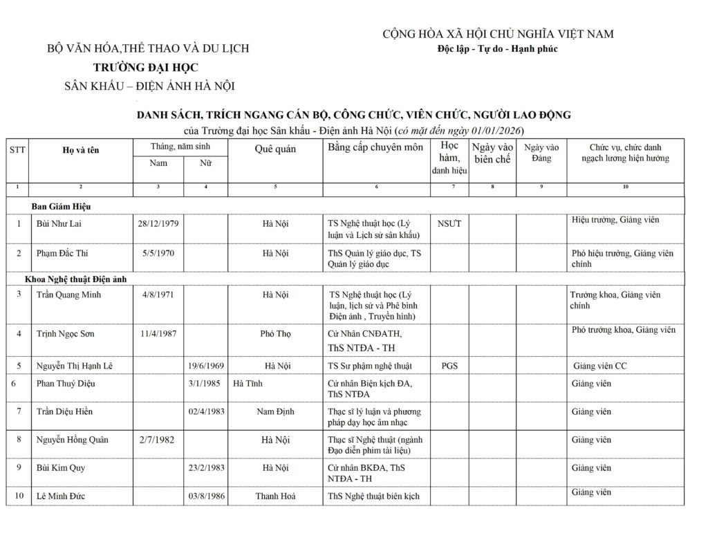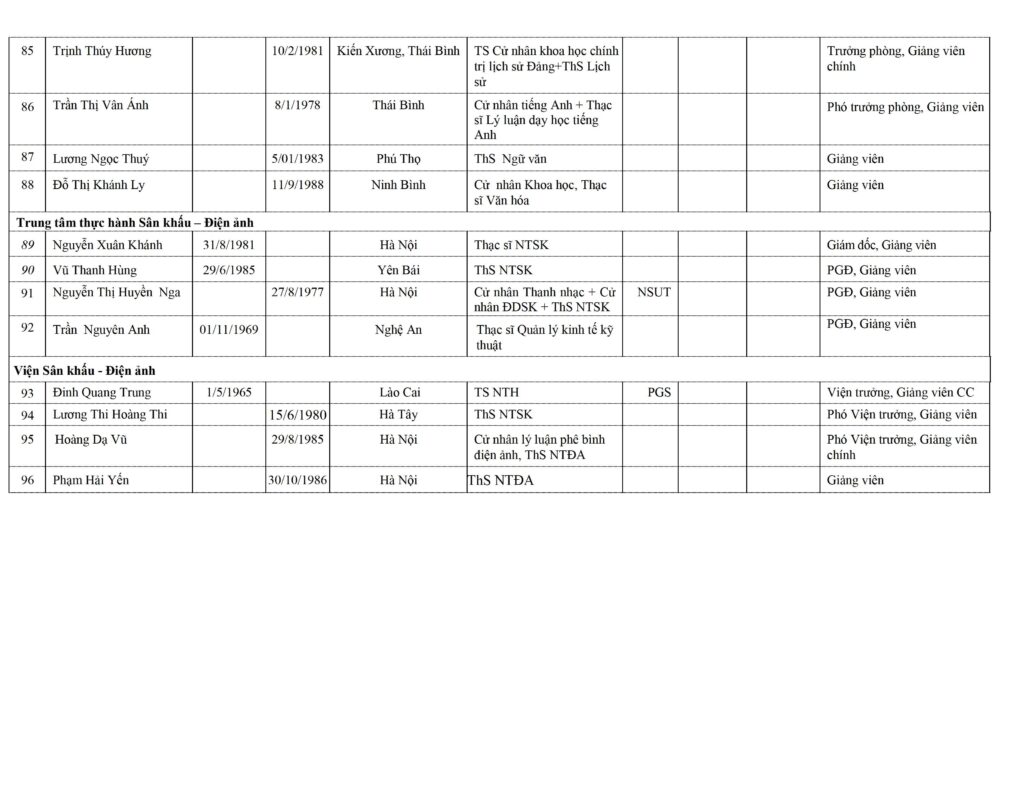 DANH SÁCH, TRÍCH NGANG CÁN BỘ, CÔNG CHỨC, VIÊN CHỨC, NGƯỜI LAO ĐỘNG CỦA TRƯỜNG ĐẠI HỌC SÂN KHẤU – ĐIỆN ẢNH HÀ NỘI
