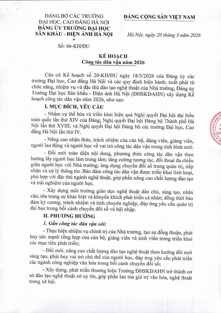 Sinh viên Trường Đại học Sân khấu – Điện ảnh Hà Nội tích cực tham gia Ngày hội toàn dân 15/3/2026 Comments Off on Sinh viên Trường Đại học Sân khấu – Điện ảnh Hà Nội tích cực tham gia Ngày hội toàn dân 15/3/2026