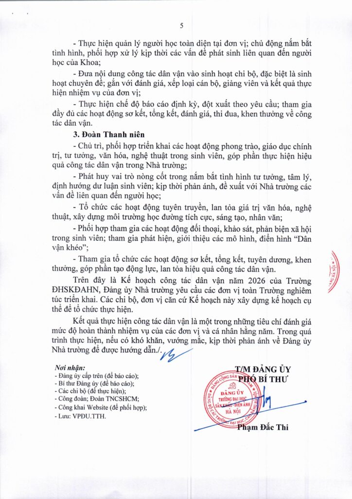 KẾ HOẠCH CÔNG TÁC DÂN VẬN NĂM 2026