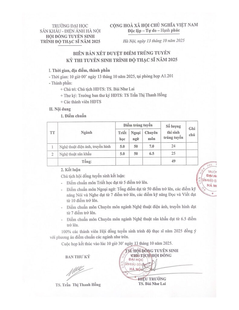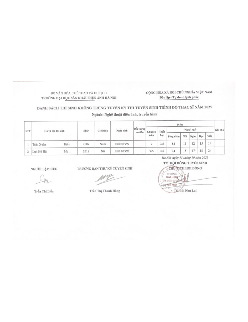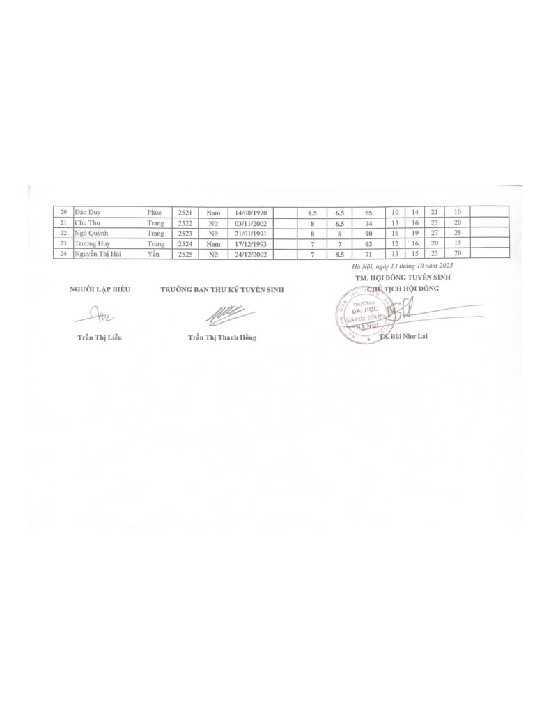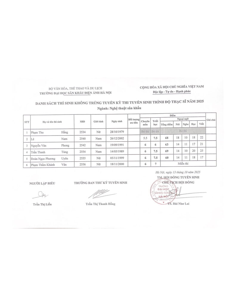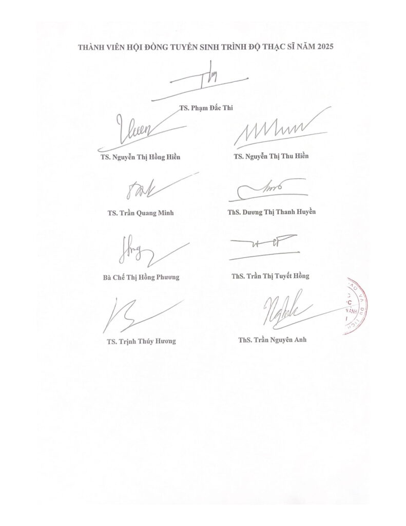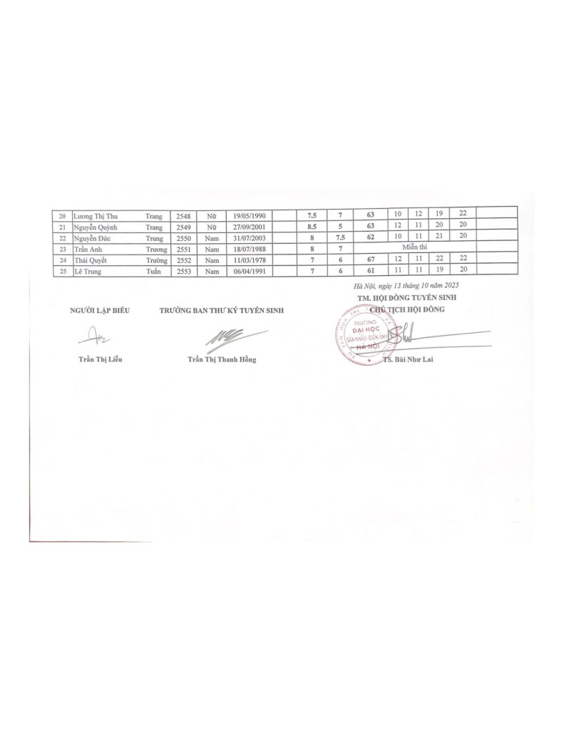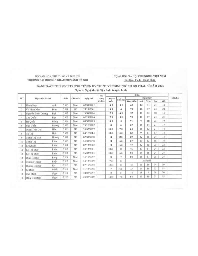 KẾT QUẢ KỲ THI TUYỂN SINH TRÌNH ĐỘ THẠC SĨ NĂM 2025