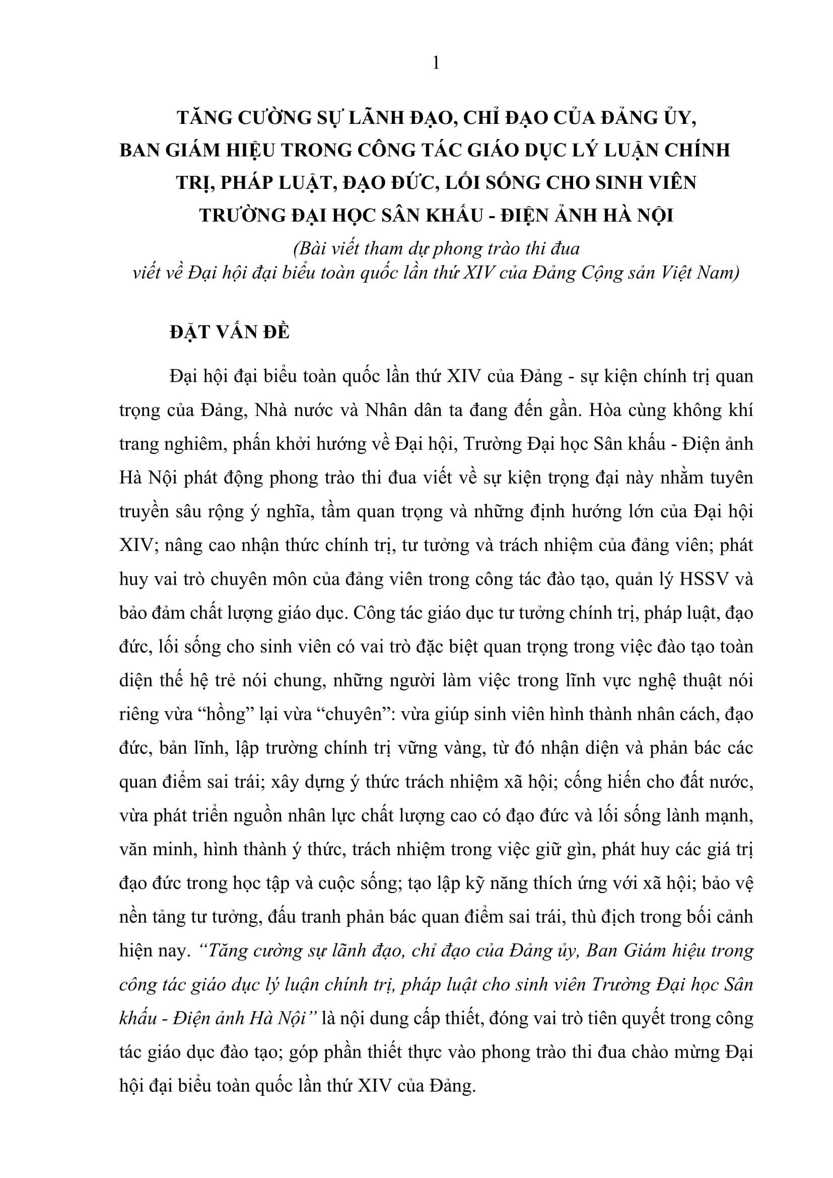 ĐẢNG ỦY TRƯỜNG ĐẠI HỌC SÂN KHẤU – ĐIỆN ẢNH HÀ NỘI TRIỂN KHAI TUYÊN TRUYỀN, QUÁN TRIỆT…